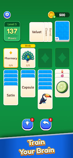 Deal word cards across the board, spot hidden word associations between them, and sort every group into its matching category. The tactic of classic solitaire fuses with the thrill of solving word association puzzles — a combination you won't find in any other card game.